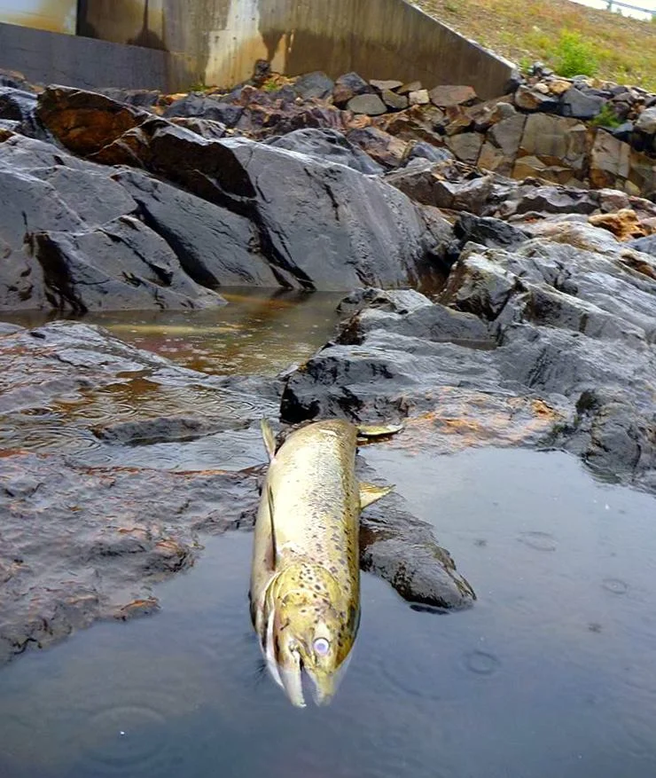Plutselige endringer i vannstand kan resultere i at laks blir sperret inne på grunt vann og dør.